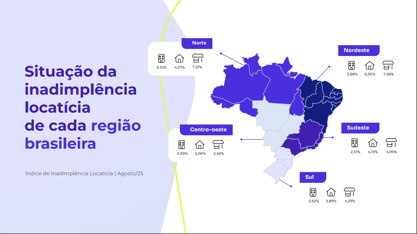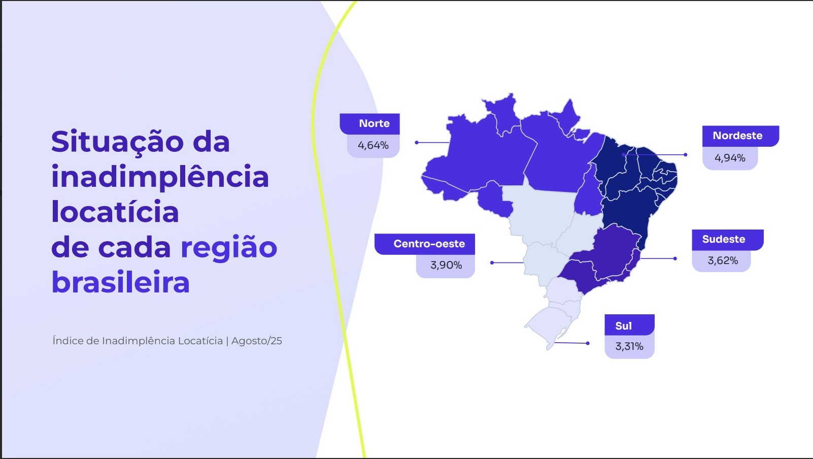 - Índice traz ranking das regiões com maior taxa de inadimplência de aluguel